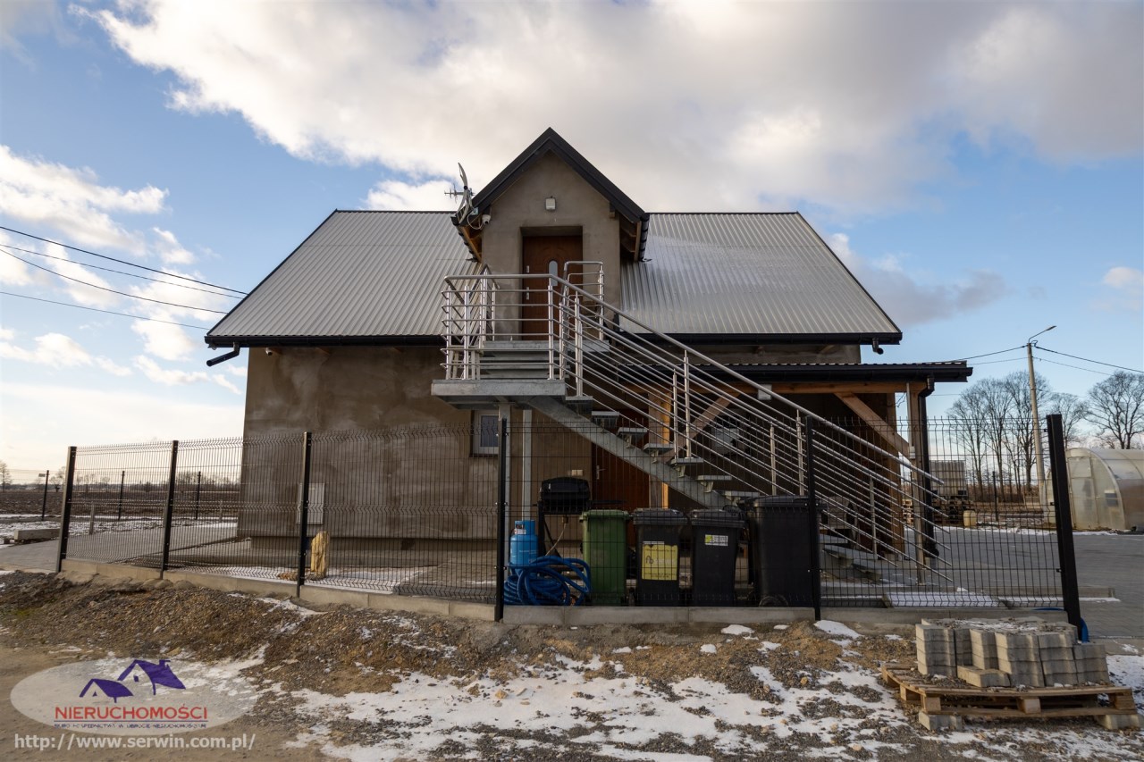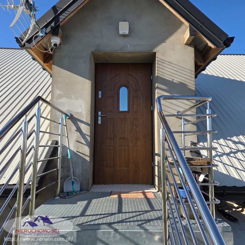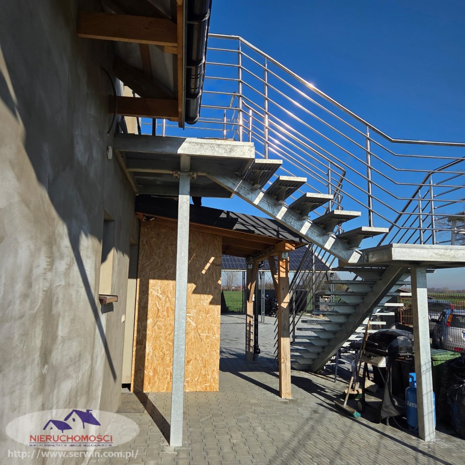 Każdy poziom na osobne wejście do budynku, na piętro prowadzą nowe, solidne, metalowe schody.