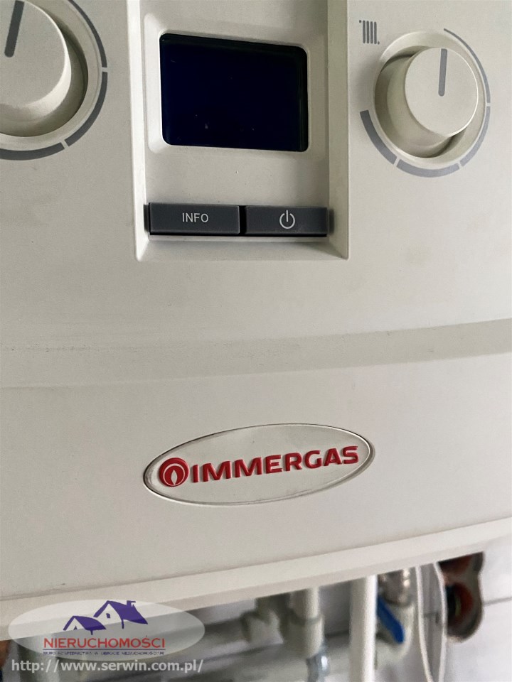 Nowoczesne rozwiązania grzewcze: zainstalowany piec dwufunkcyjny marki IMMERGAS z zasobnikiem 40 l, system klimatyzacji GREE zapewniający ekologiczne ogrzewanie zimą oraz efektywne chłodzenie latem. Dodatkowo – przygotowana instalacja pod pompę ciepła.