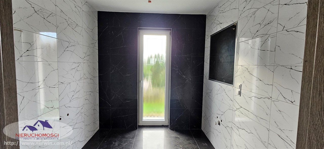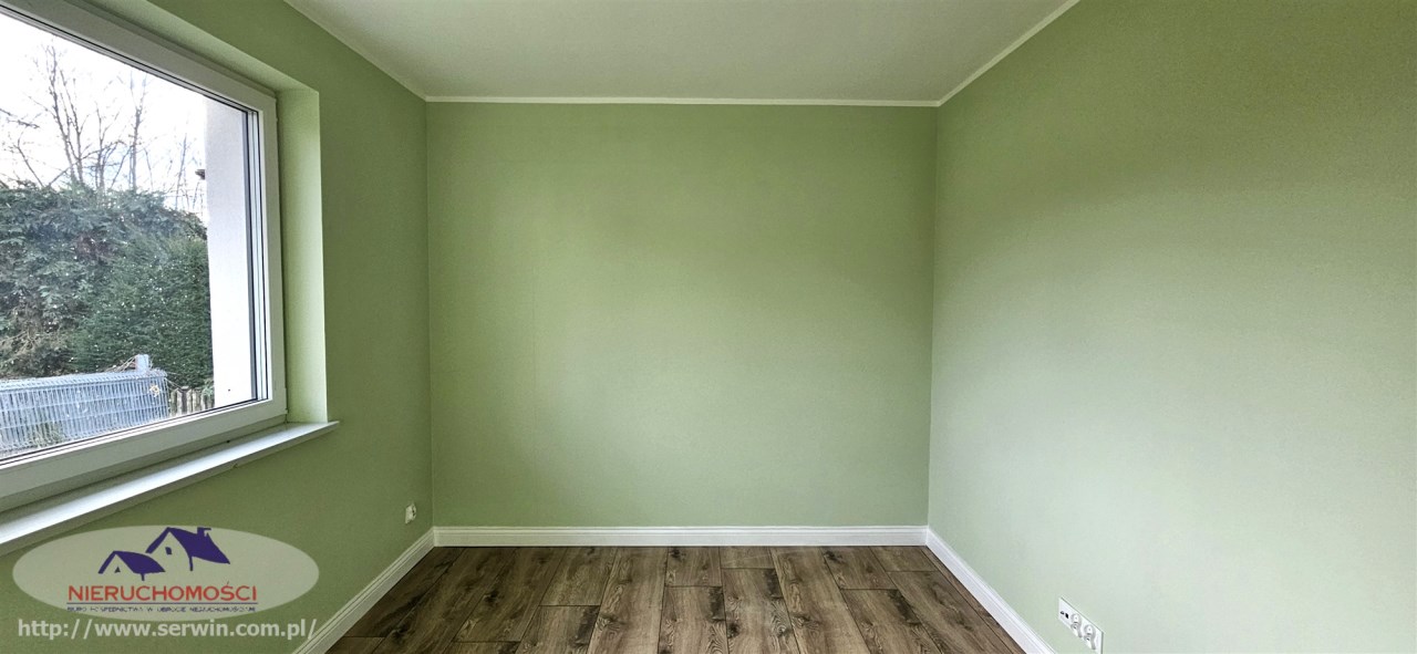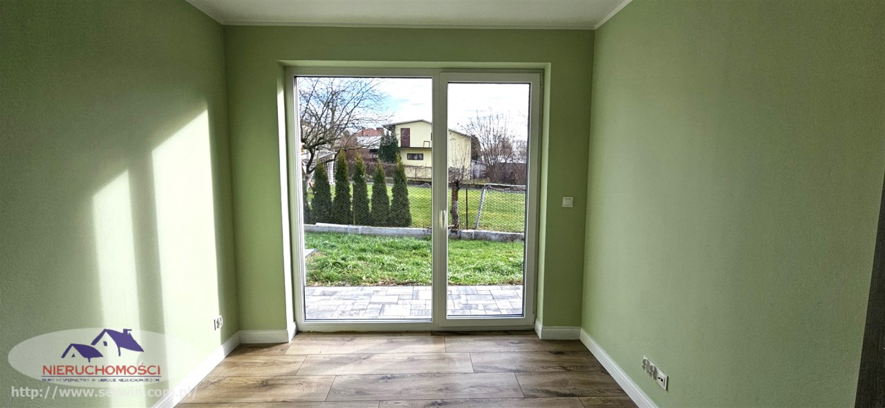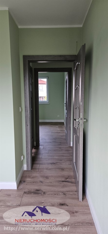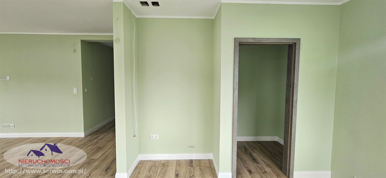 Stan do zamieszkania – wnętrze wykończone: na podłogach nowoczesne panele i płytki oraz stolarka wewnętrzna.