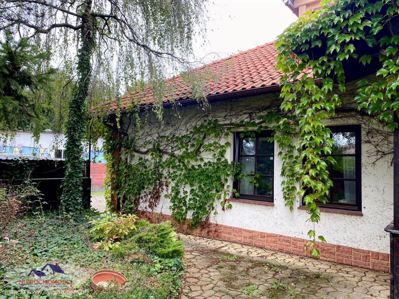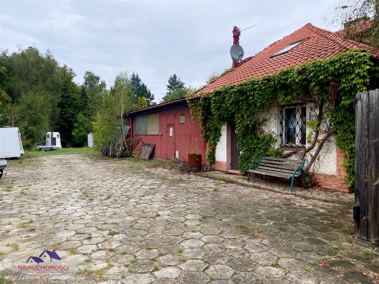 - Działka o powierzchni 2986 m² ogrodzona oraz częściowo zagospodarowana (ogrodzenie od frontu drewniane na podmurówce, brama wjazdowa blaszana, , pozostała część działki ogrodzona siatką na podmurówce).