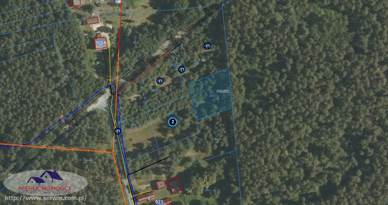 Działka położona jest w drugiej linii zabudowy, w otoczeniu lasu i luźnej zabudowy jednorodzinnej. Zapewnia ciszę, prywatność i poczucie swobody.