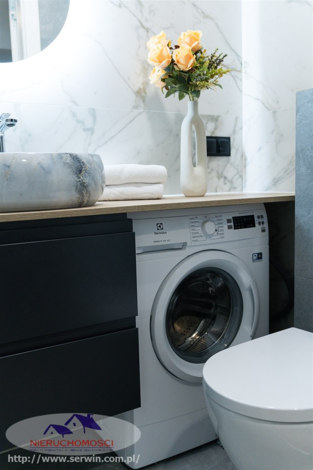 | Wyposażenie łazienki | lustro, pralka, prysznic, umywalka, WC |